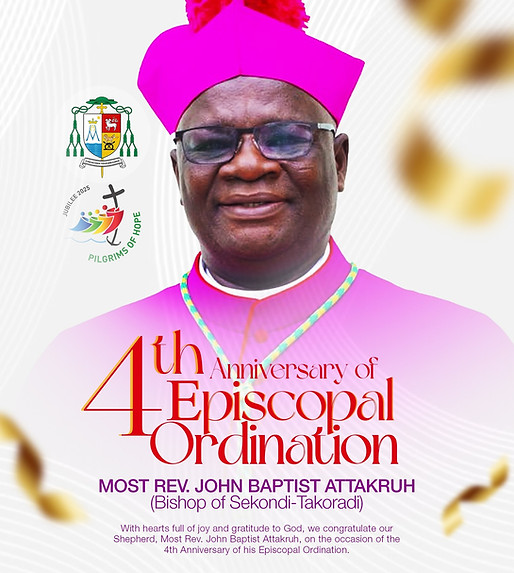 The Catholic Diocese of Sekondi-Takoradi praises God for the Fourth Anniversary of the Episcopal Ordination of Most Rev. John Baptist Attakruh, Bishop of Sekondi-Takoradi.